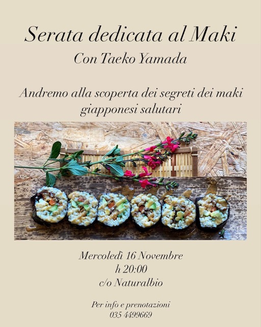 una serata interamente dedicata alla realizzazione di maki vegetali in chiave salutare, con riso integrale e senza zucchero.